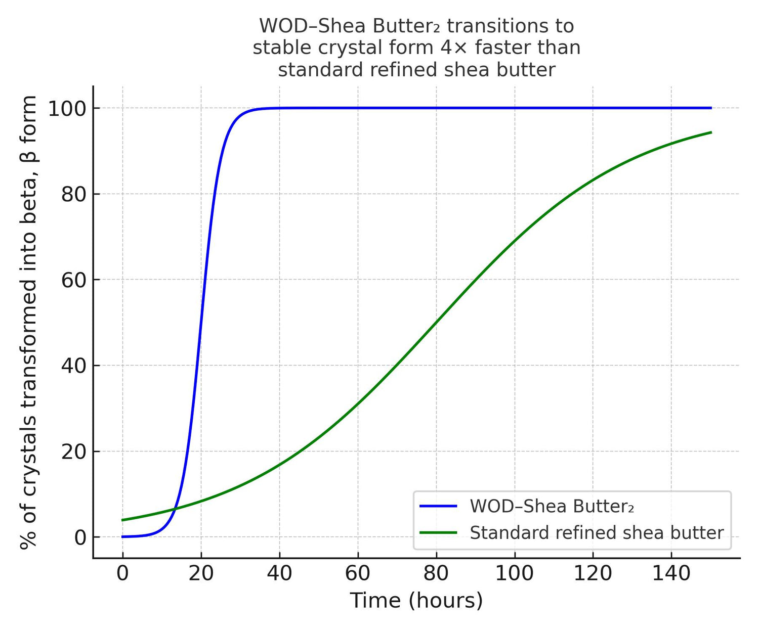 WOD-Shea Butter₂ sets up to 4x faster into its stable form, which means fewer grainy crystals, a silkier texture, and longer-lasting quality for your formulations.